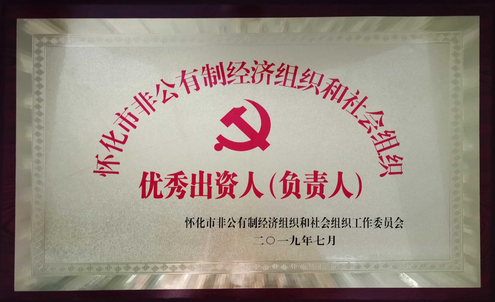 2019年7月被懷化市非公有制經濟組織和社會組織工作委員會評為“懷化市非公有制經濟組織和社會組織優(yōu)秀出資人(負責人)”